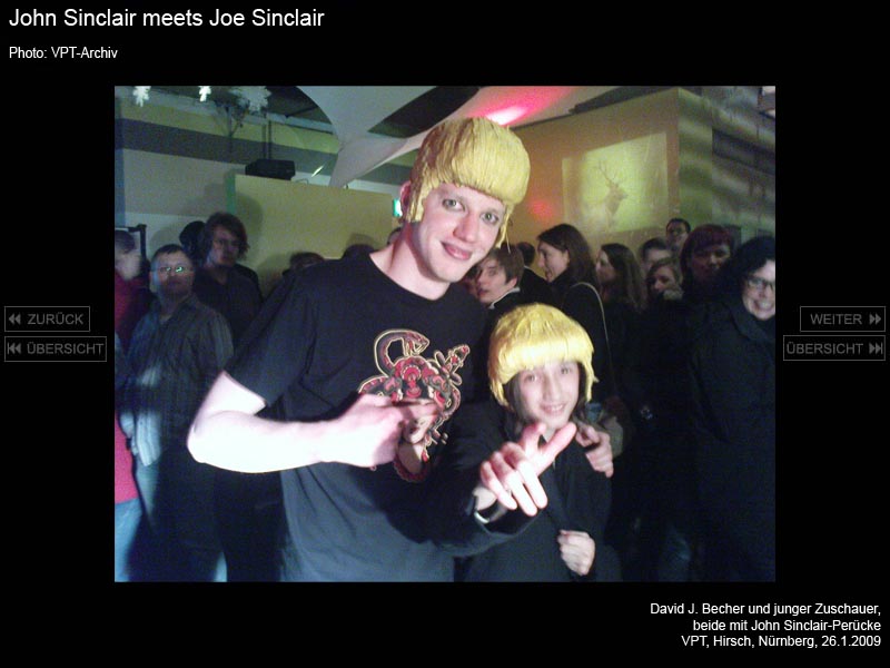 John Sinclair meets Joe Sinclair, Photo: VPT-Archiv, David J. Becher und junger Zuschauer, beide mit John Sinclair-Perücke, VPT, Hirsch, Nürnberg, 26.1.2009