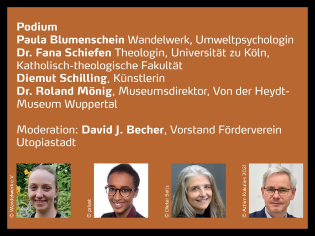 08. Oktober 2025Wuppertal – Utopiastadt »Sorge für das gemeinsame Haus« Moderation https://utopiastadt.eu/26-9-19-10-natuerlich-mensch |